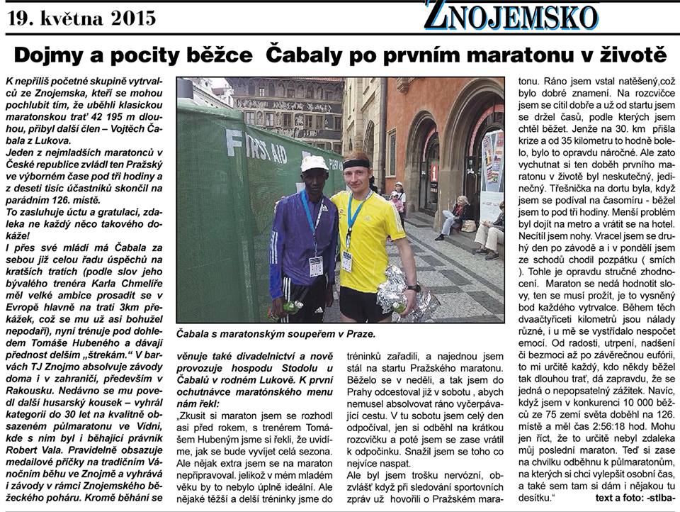 2013-04-22 Znojemské listy - Znojmáci senzačně vyhráli pražský půmaratón